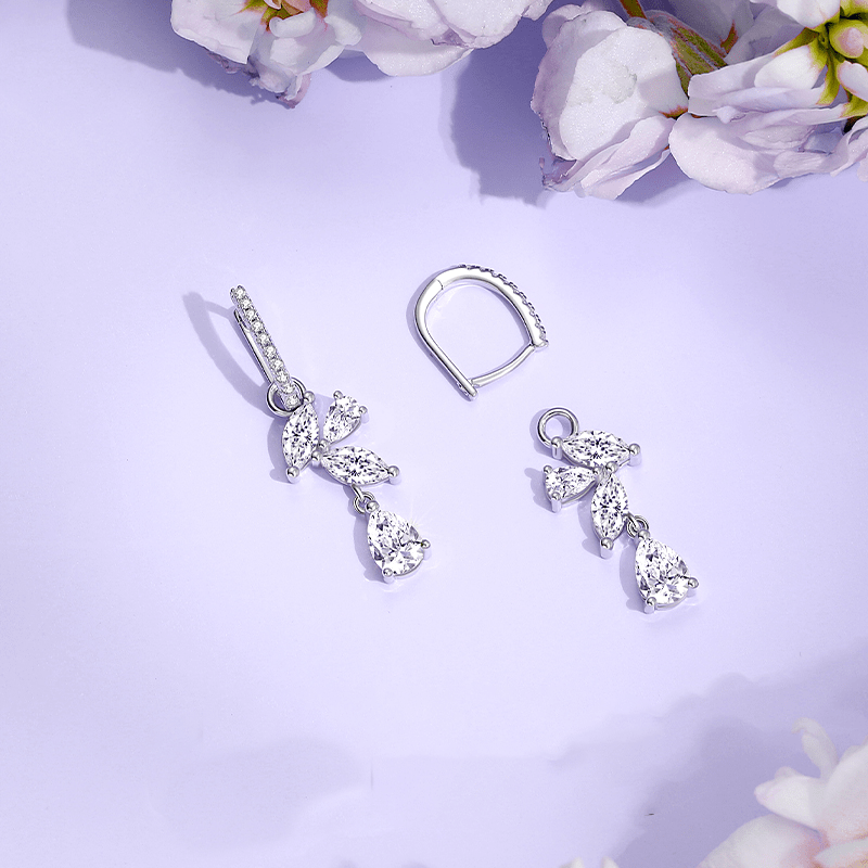 FANCI "Wisteria Flower Cluster” Sterling Silver Floral Hoops Drop Earrings