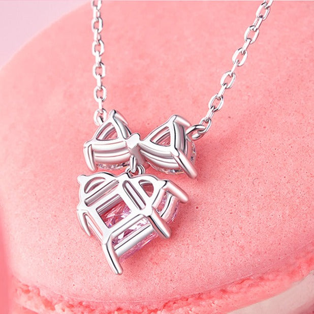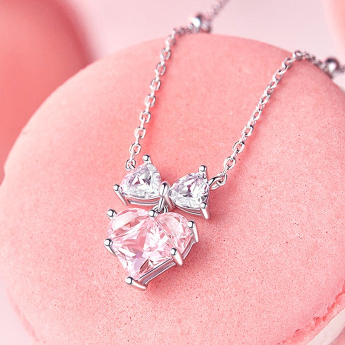 FANCI "Bow For Princess" Pink Heart Sterling Silver Necklace