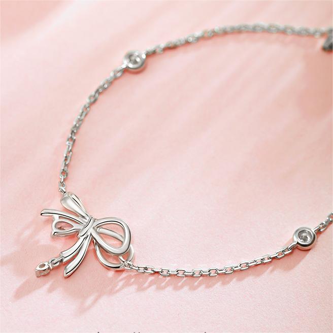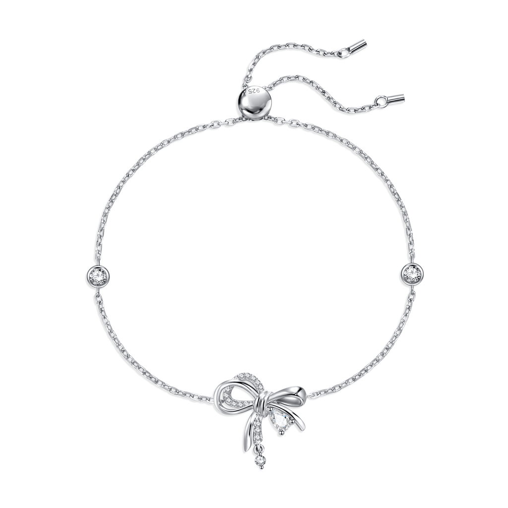 FANCI “My Boo” Sterling Silver Sweet Bow White Stone Strand Bracelet