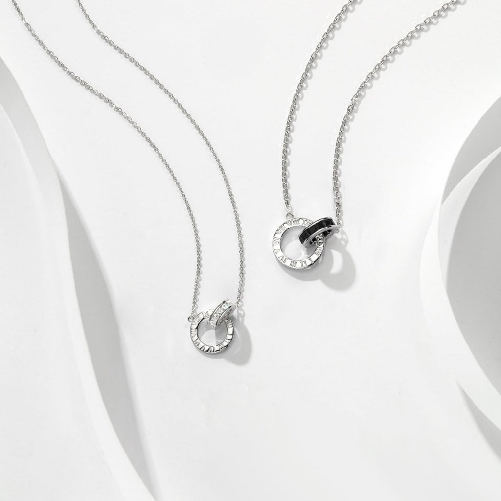 FANCI "Roman Time" Interlocking Circle Couples Sterling Silver Necklace