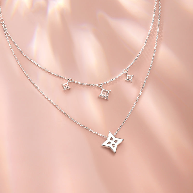 FANCI "Starlit Melody" Two Layer Sterling Silver Necklace
