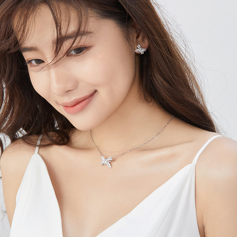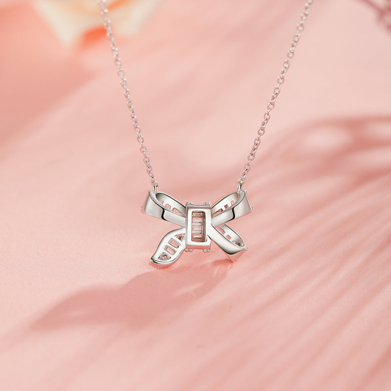 FANCI "Honey Doll" Bow White CZ Sterling Silver Necklace