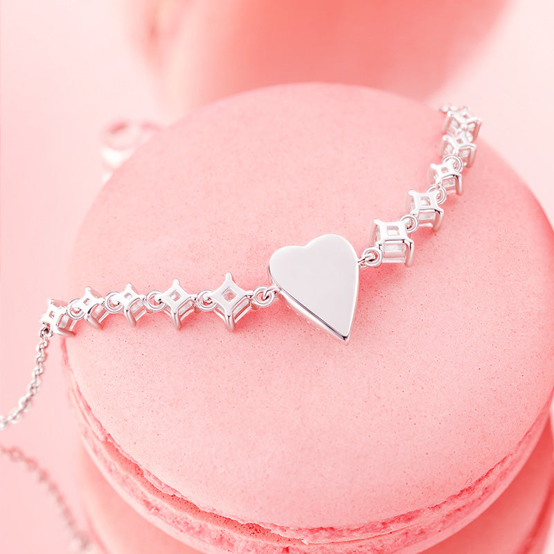 FANCI "Pink Moment" Pink Heart Sterling Silver Bracelet With White Pearl and CZ Stones