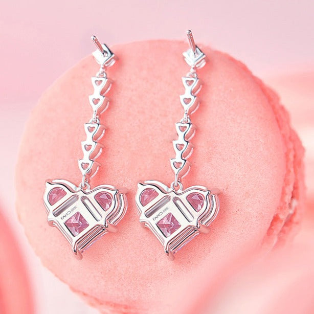 FANCI "Sweetheart" Pink Heart Drop Dangling Sterling Silver Earrings With White CZ Stones