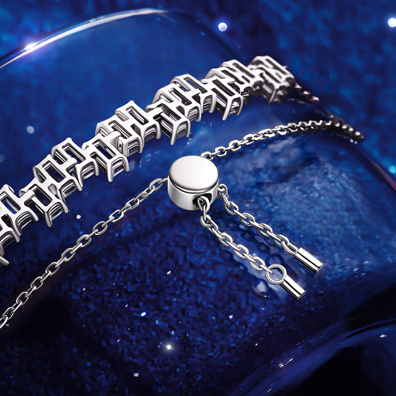 Our "Midnight Sonata" bracelet captures the enchanting melody of a starlit night, where every star twinkles like a note in a celestial symphony. Beautifully set with fancy emerald cut cubic zirconia stones for an elegant and sophisticated finish.