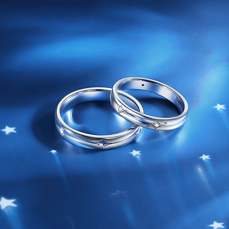 FANCI "Starlit Melody" Couples Promise Sterling Silver Star Matching Rings
