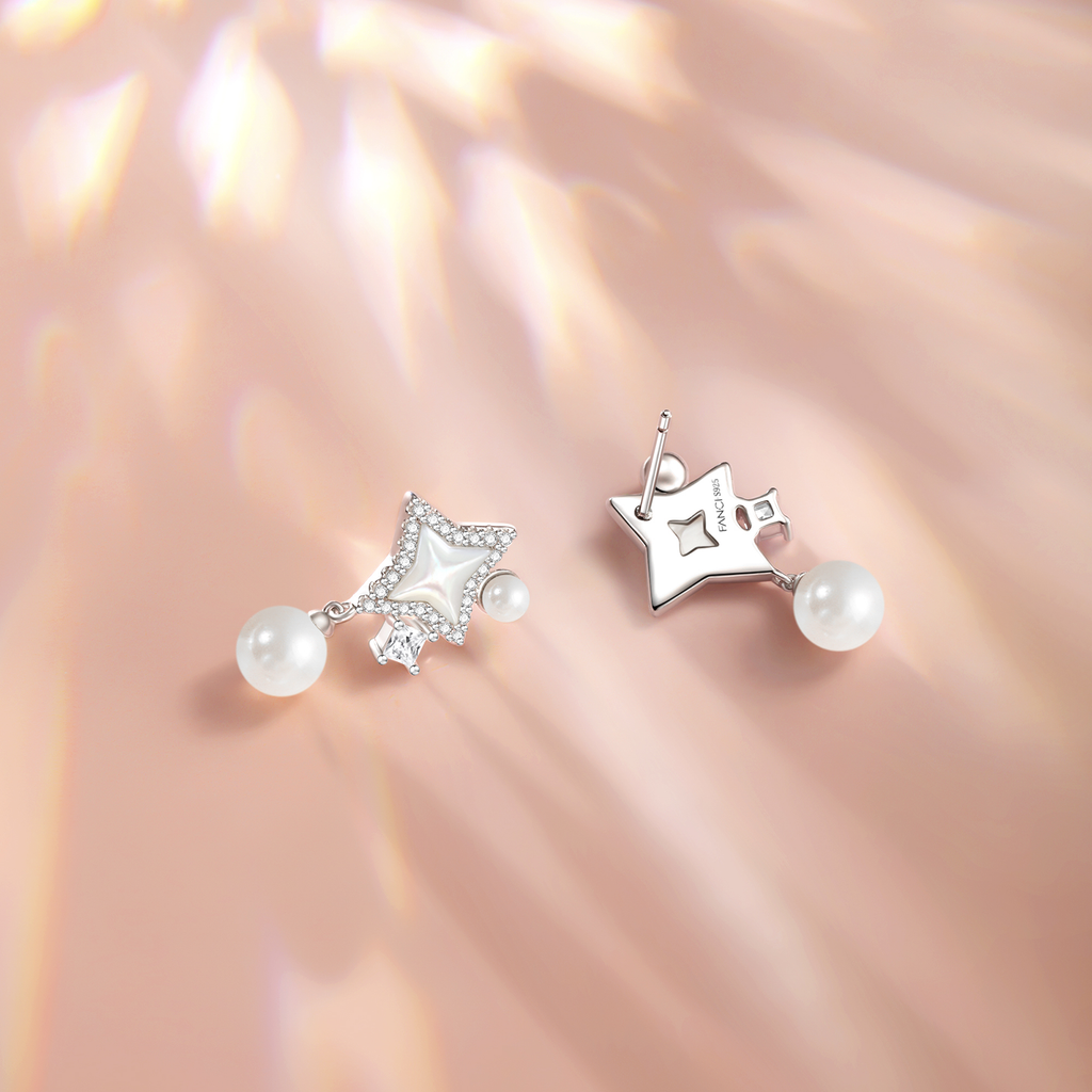 FANCI "Starlit Melody" Sterling Silver Pearl Drop Earrings
