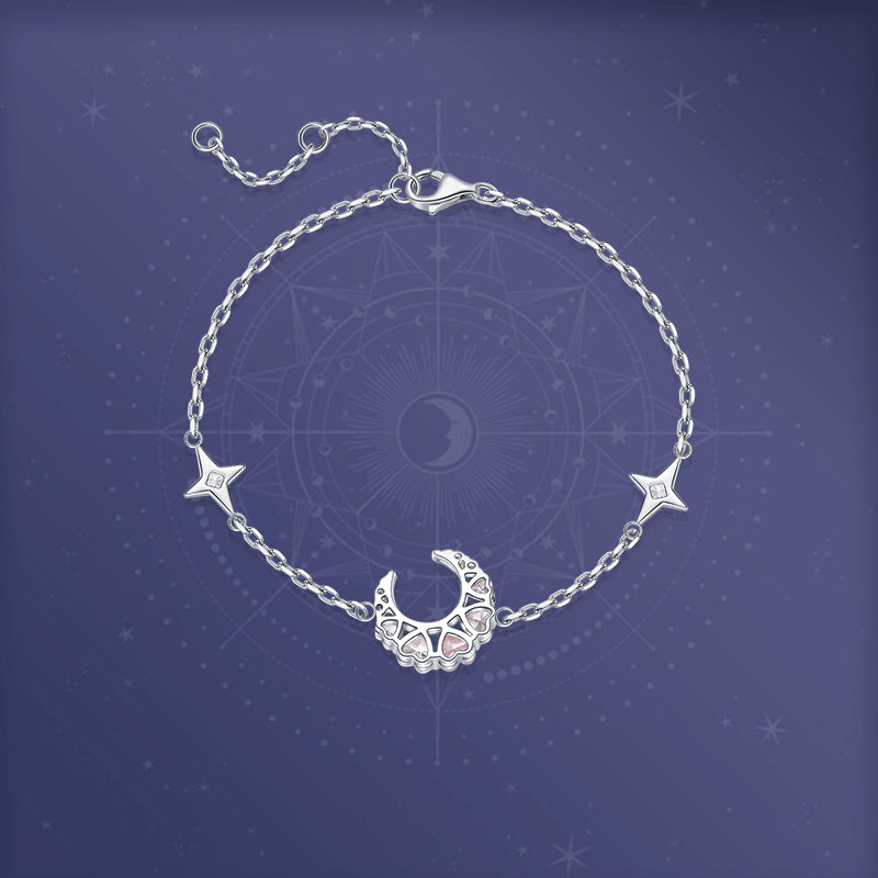 FANCI "Pink Dream" Crescent Moon Star Sterling Silver Strand Bracelet